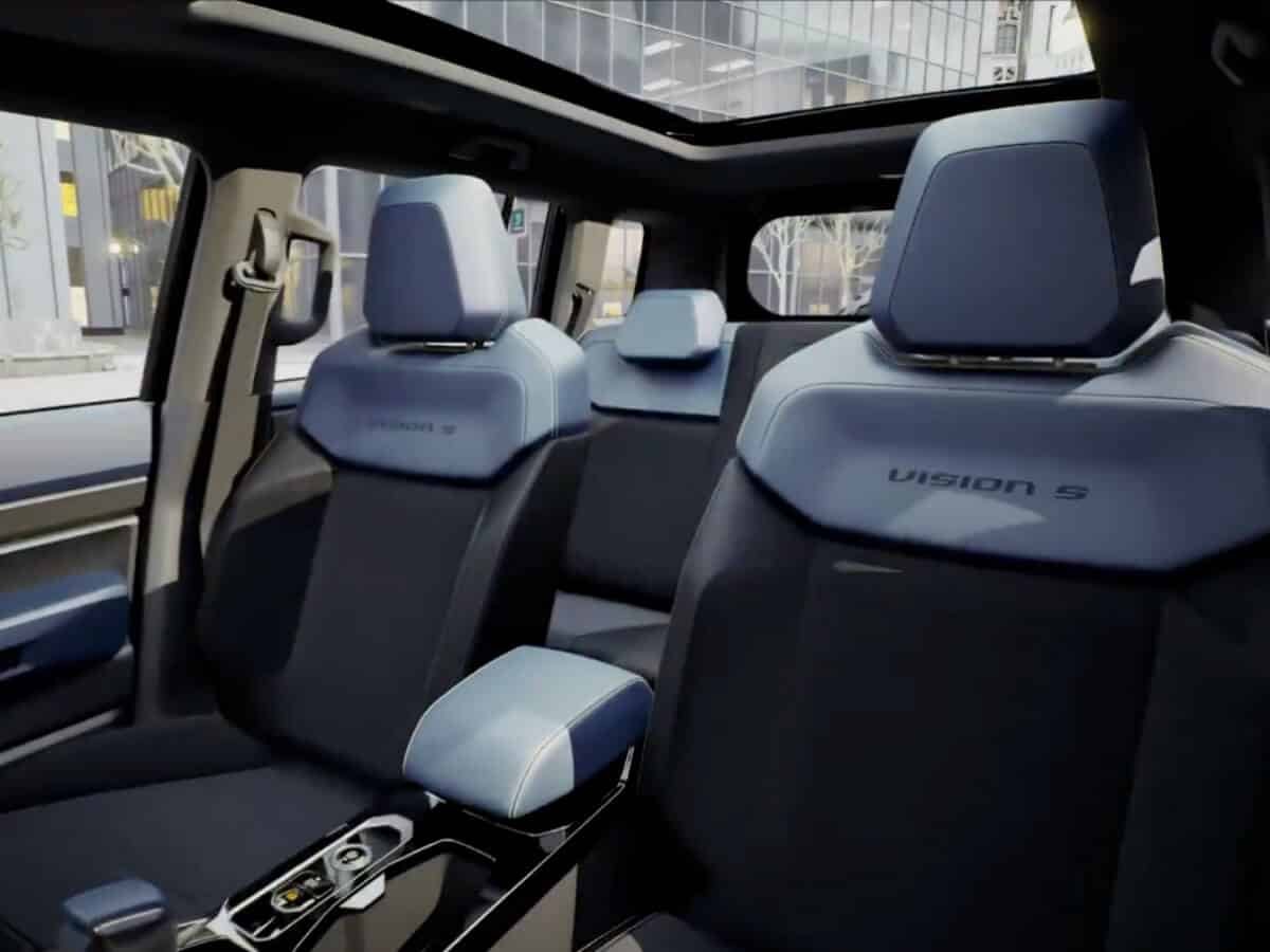 இன்டீரியரில் ‘விஷன் எஸ்’ என்று எழுதப்பட்ட 3-ஸ்போக் ஸ்டீயரிங் வீலுடன் இரட்டை டிஸ்பிளே பெற்று மிக அகலமான திரைகள், வயர்லெஸ் சார்ஜர், எலக்ட்ரானிக் பார்க்கிங் பிரேக் உள்ளிட்டவை பெற்றுள்ளது.