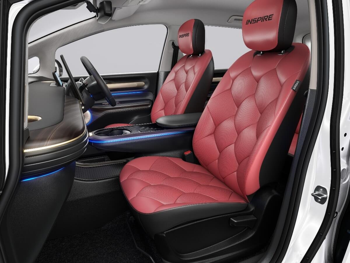 சொகுசான பயணத்துக்கு ஏற்ற ஆடம்பர வசதிக்காக 135 டிகிரி சாய்வு ஏரோ லான்ஞ்ச் இருக்கைகளுடன் கூடிய பிரீமியம் டூயல் டோன் உட்புறங்கள் சாங்ரியா ரெட் மற்றும் பிளாக் லெதர் அப்ஹோல்ஸ்டரியில் முடிக்கப்பட்டுள்ளன. ஸ்கைலைட் இன்ஃபினிட்டி வியூ பனரோமிக் சன்ரூஃப், கவர்ச்சிக்காக ஒளிரும் சில் பூசப்பட்ட மற்றும் வயர்லெஸ் சில் பிளேட்டுகளும் உள்ளது.