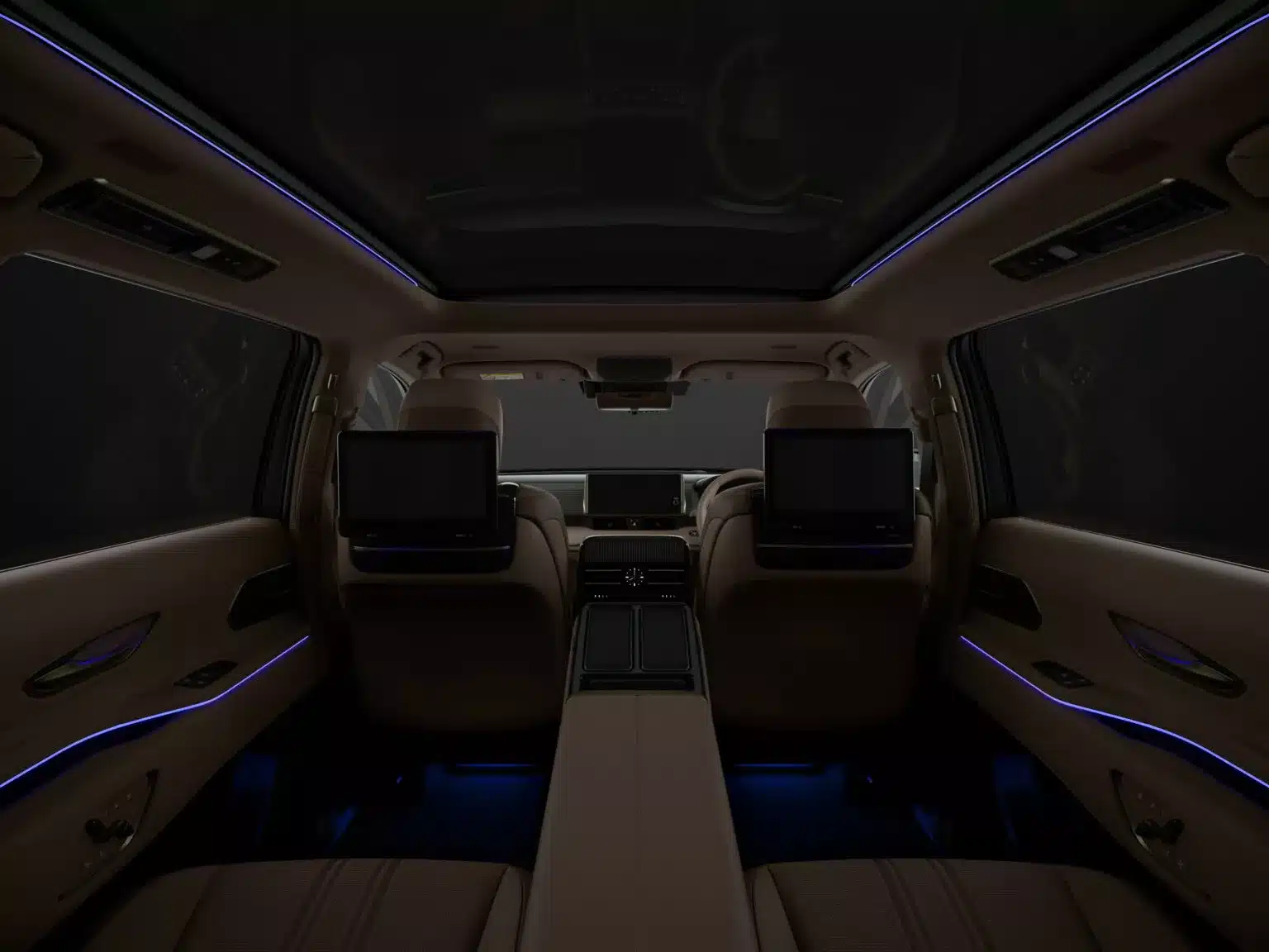 இன்டிரியரில் அதிகப்படியான ஆடம்ப வசதிகள் கொண்டு பின்புற இருக்கைக்கு பல வசதிகள் வழங்கப்பட்டுள்ளது. இரண்டு 12.3-இன்ச் டிஸ்ப்ளேபிவில் ஒன்று இன்ஃபோடெயின்மென்ட் மற்றொன்று இன்ஸ்ட்ரூமெண்ட் கிளஸ்ட்டராக உள்ளது. இந்த மாடலில் சுழலும் வகையிலான பிக்னிக் டேபிள், இரண்டு 11.6-இன்ச் டிவி, இரண்டு நீக்கக்கூடிய 5.5-இன்ச் டச்ஸ்கிரீன் கண்ட்ரோல் பேனல்கள் மற்றும் குளிர்சாதன பெட்டியையும் பெறுகிறது.