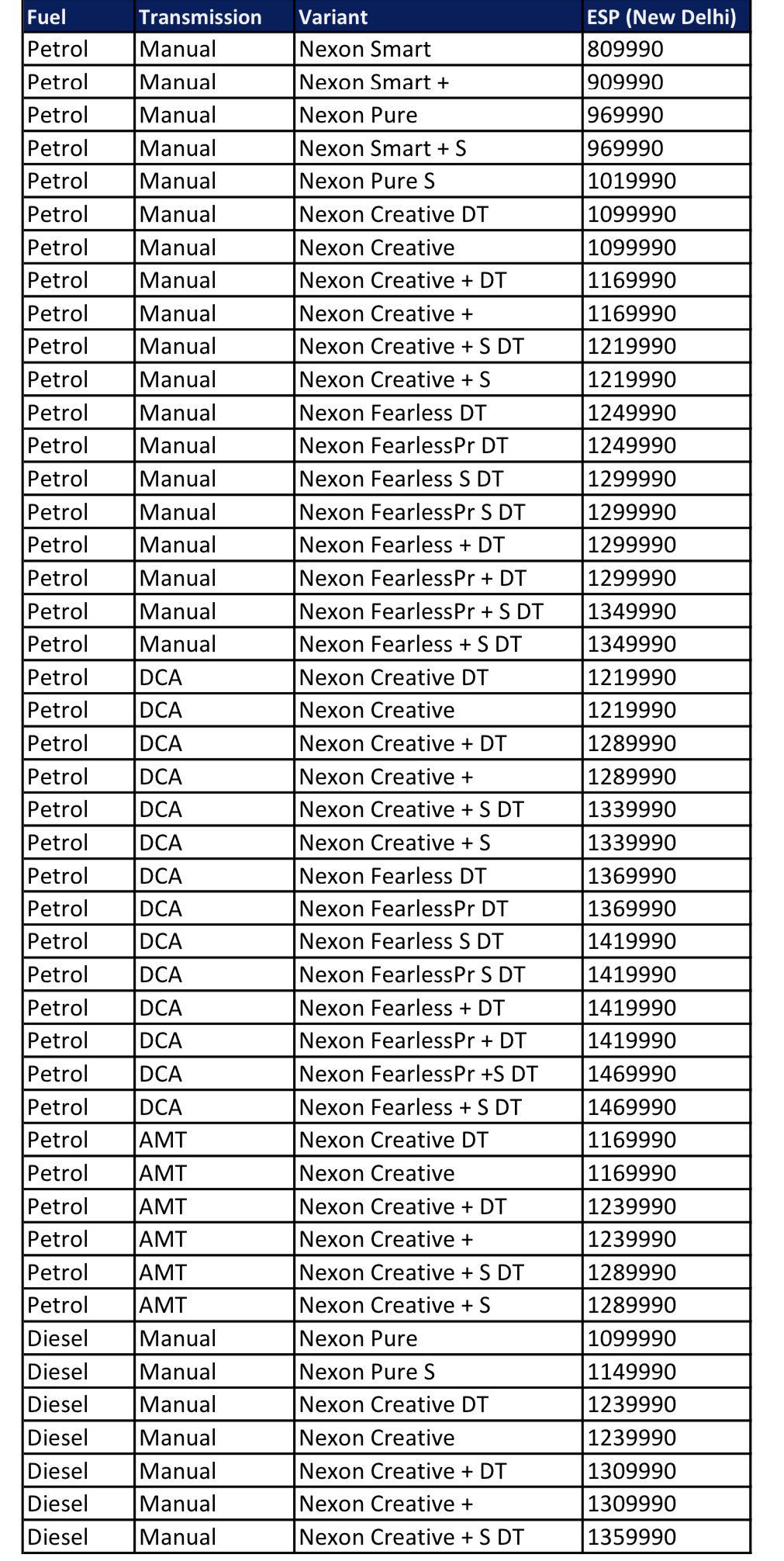 | Nexon facelift Creative Petrol DCA | Rs 12.20 lakh |
